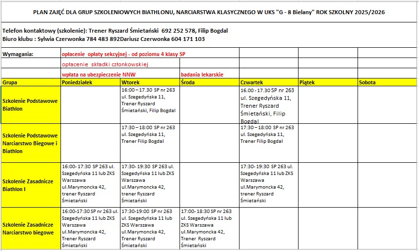Rozkład zajęć - Biathlon