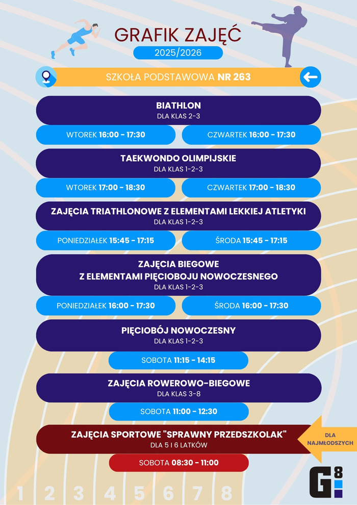 ZAJĘCIA ORAZ AKCJE SPORTOWE DLA KLAS 1–3 SP prowadzone na obiektach sportowych SP nr 263 - zobacz