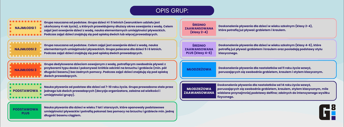 - na pływalni przy ul. Conrada 6 w godzinach 9.45-10.30 (zapis możliwy dla uczestników z grup 45 minutowych od podstawy do młodzieży zaawansowanej) oraz 10.30-11.00 (dla grup Najmłodszych 1,2,3),